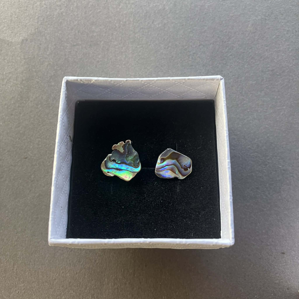 Szivárvány fénnyel irizáló hullámos Abalone bedugós fülbevaló
