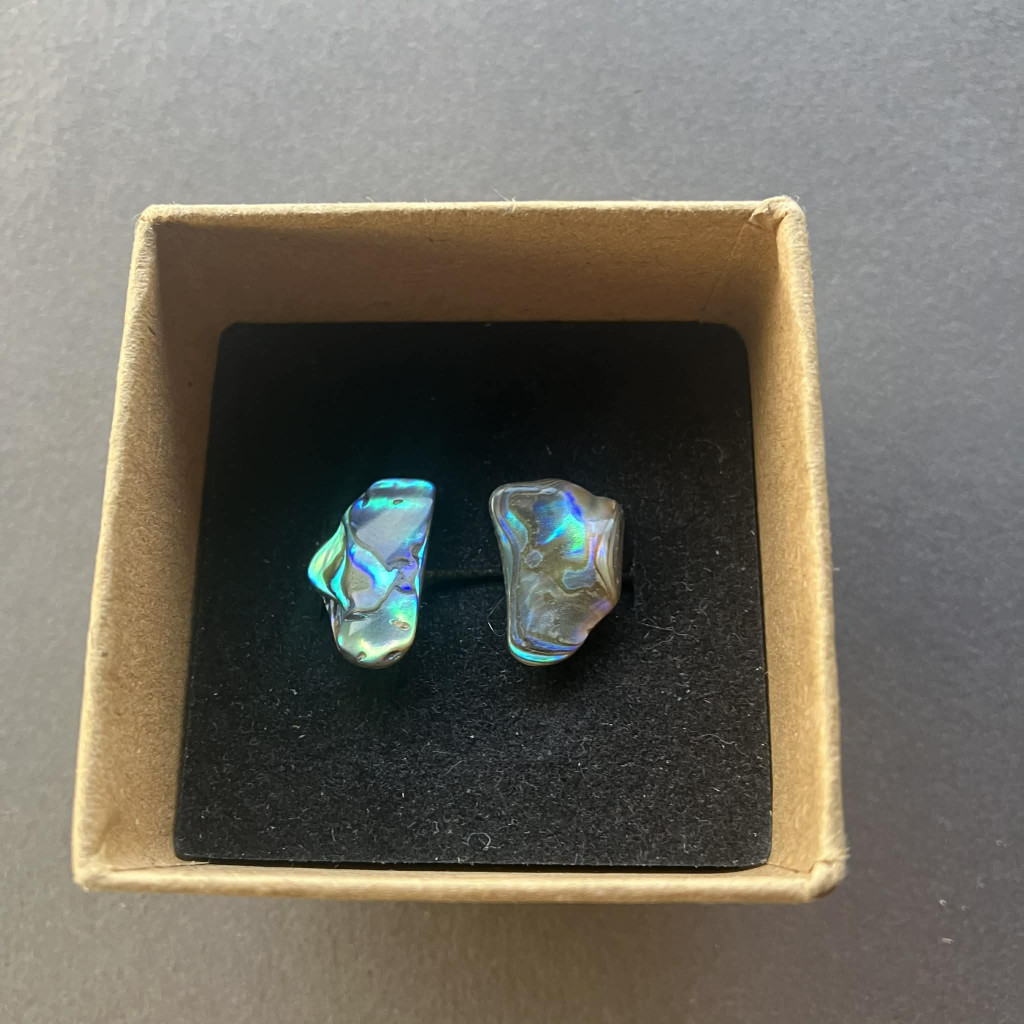 Nyers, természetes, irizáló abalone kagyló fülbevaló, bedugós nikkelmentes szerlékkel.