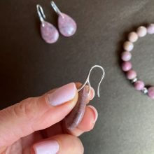 Rózsaszín, csiszolt rodonit köves fülbevaló