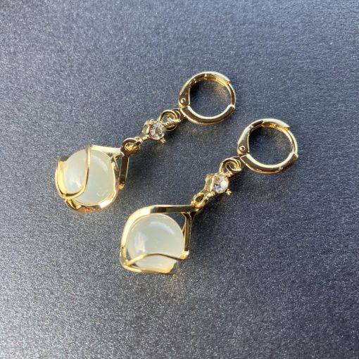 Tejfehér golyós /8 mm/ galvanizált arany színű fülbevaló, pici csiszolt kővel.