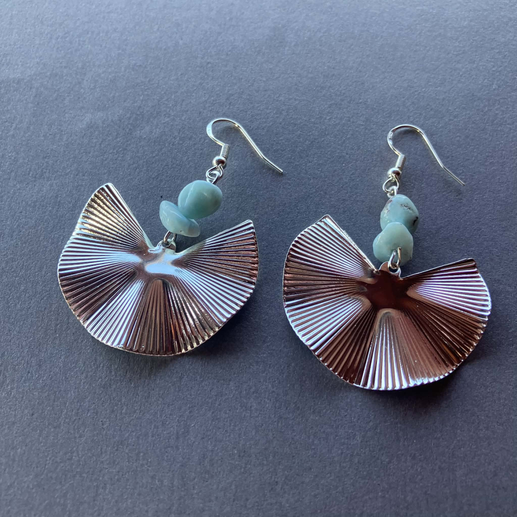 6 -7 mm-es nyers LARIMÁR kövek és ezüst színű legyező fülbevaló.