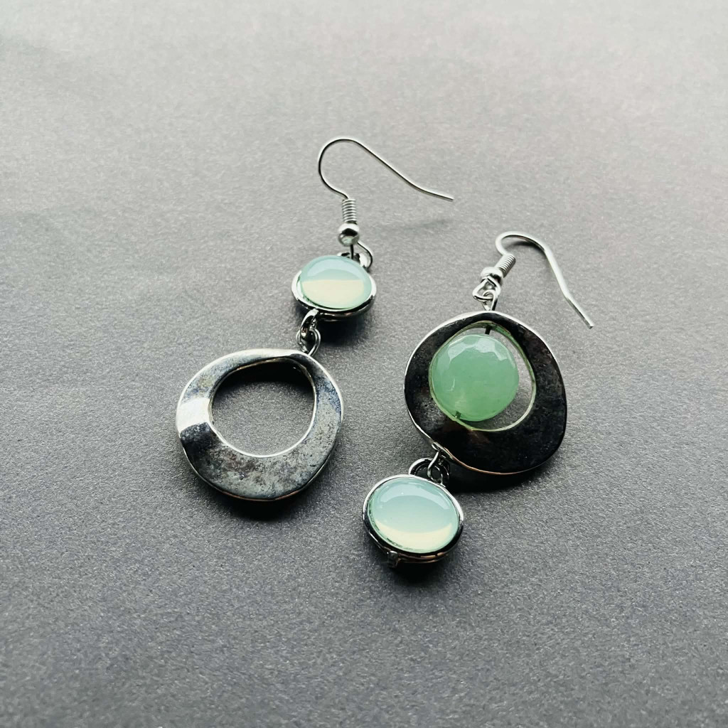 Ez az asszimmetrikus aventurin fülbevaló könnyed, játékos megjelenést ad, miközben a zöld aventurin nyugtató energiáját hordozza. A természetes ásvány a belső egyensúlyt és a harmonikus működést támogatja, segít lecsendesíteni a feszültséget és nyitottabban kapcsolódni a mindennapokhoz.