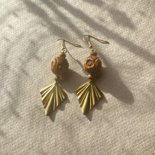 Sárgaréz és fa kézműves fülbevaló. Természet ihlette, kézzel készült különleges termék.
