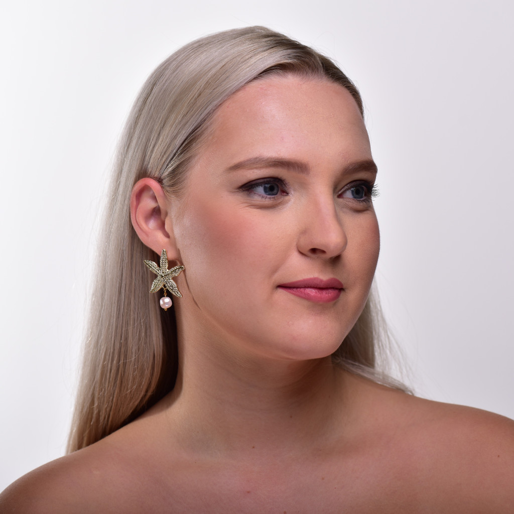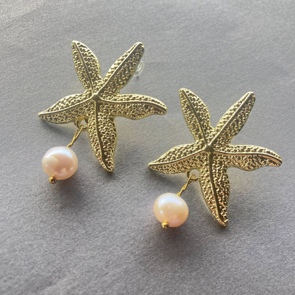 Tengeri csillag bedugós design fülbevaló édesvízi tenyésztett gyönggyel.