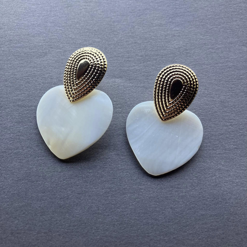 Csiszolt szív alakú kagyló fülbevaló.