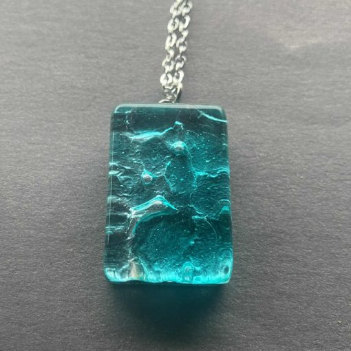 Eredeti, kézzel készített, egyedi muranoi üveg szett. A szett tartalma egy egyedi, bedugós muranoi üveg fülbevaló és egy egyedi, kézműves medál, hozzá illő lánccal, díszdobozzal.