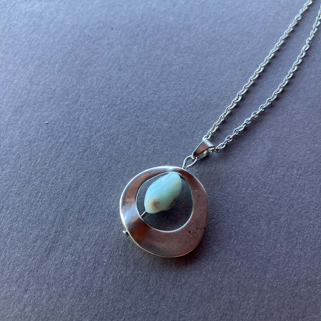 6 -7 mm-es nyers LARIMÁR kövek és ezüst színű kör medál nyakláncon.