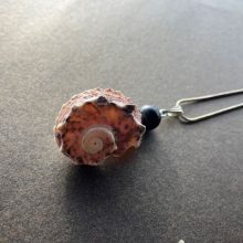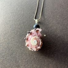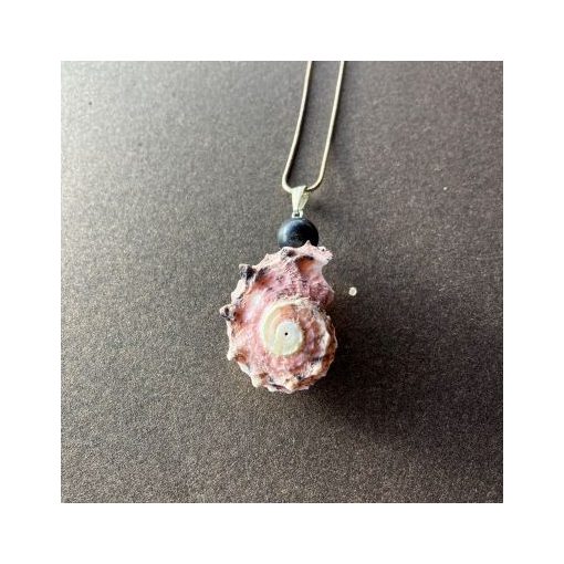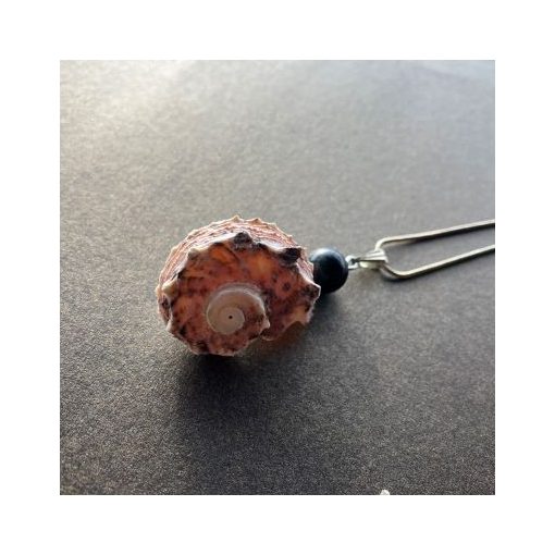 Valódi tengeri csiga medál, fekete ónix gyönggyel, ezüst színű láncon