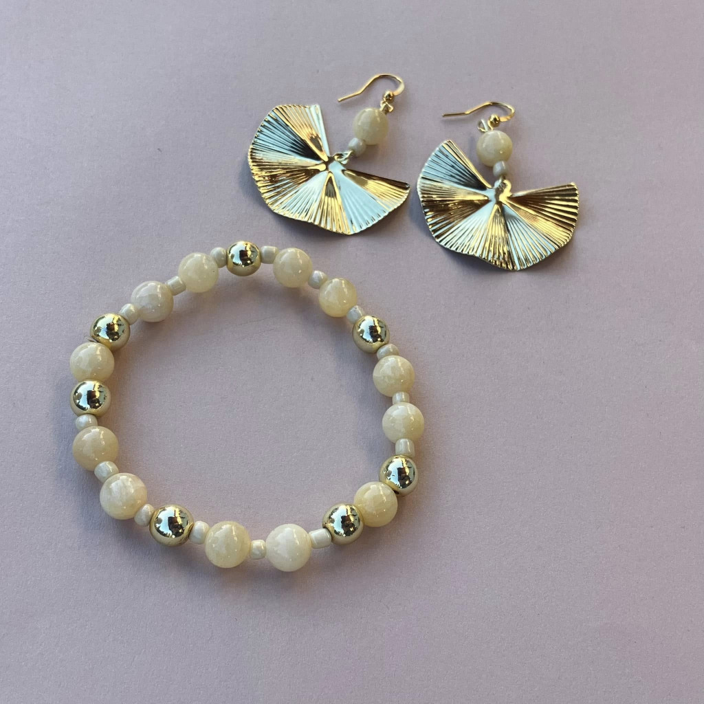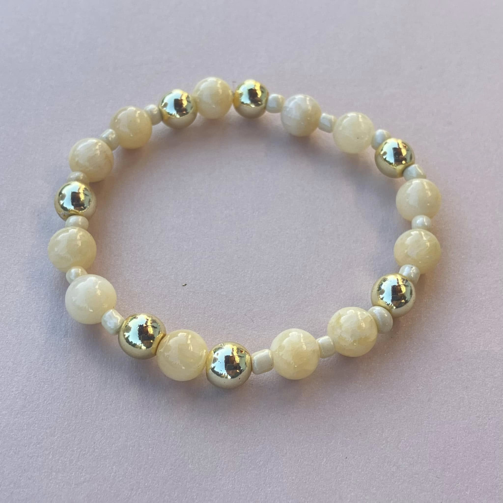 8 mm-es kalcit ásványgyöngyökkel és arany színű díszítő elemekkel készült karkötő