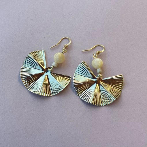 és egyedi kalcit gyönggyel díszített galvanizált fémötvözet legyező fülbevaló