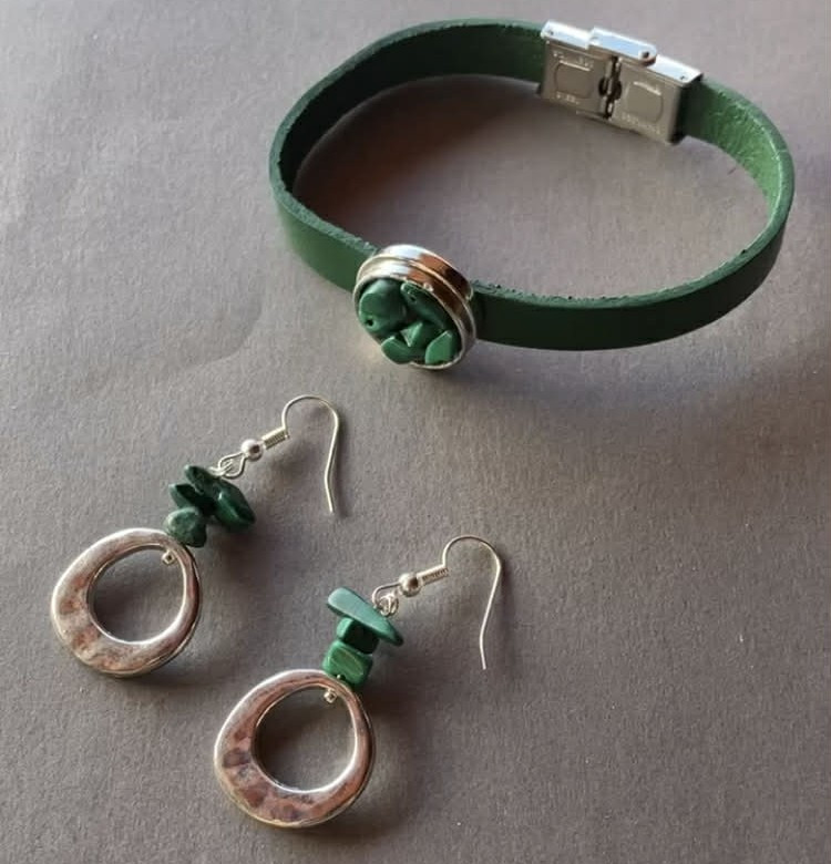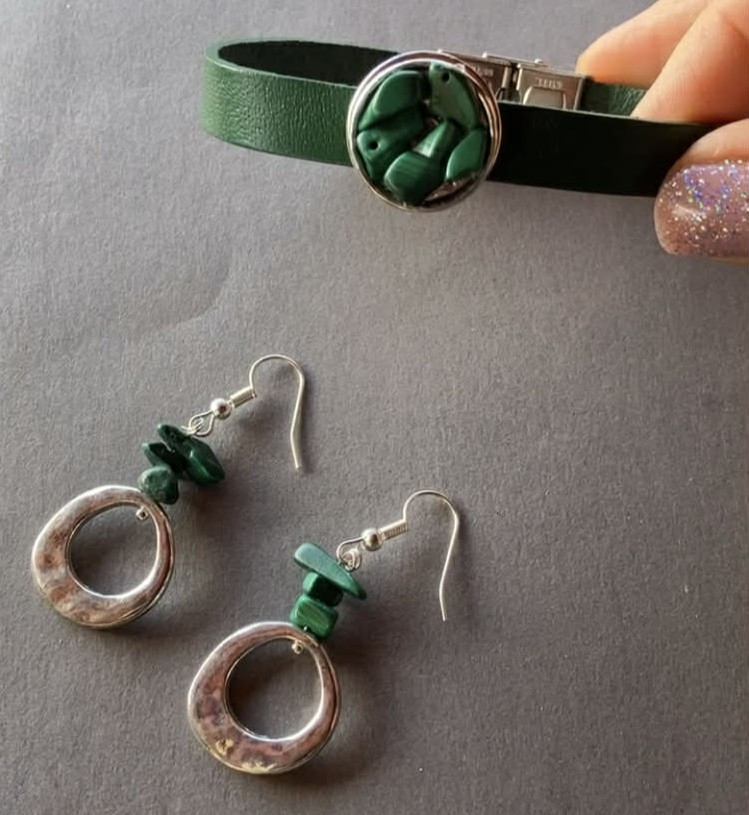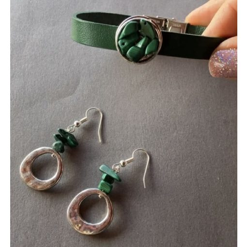 Ez a csodás mély zöld színű malahit szett egyedi, kézműves munka.