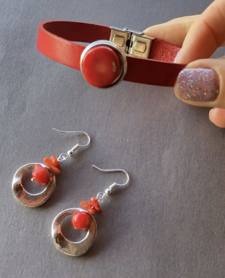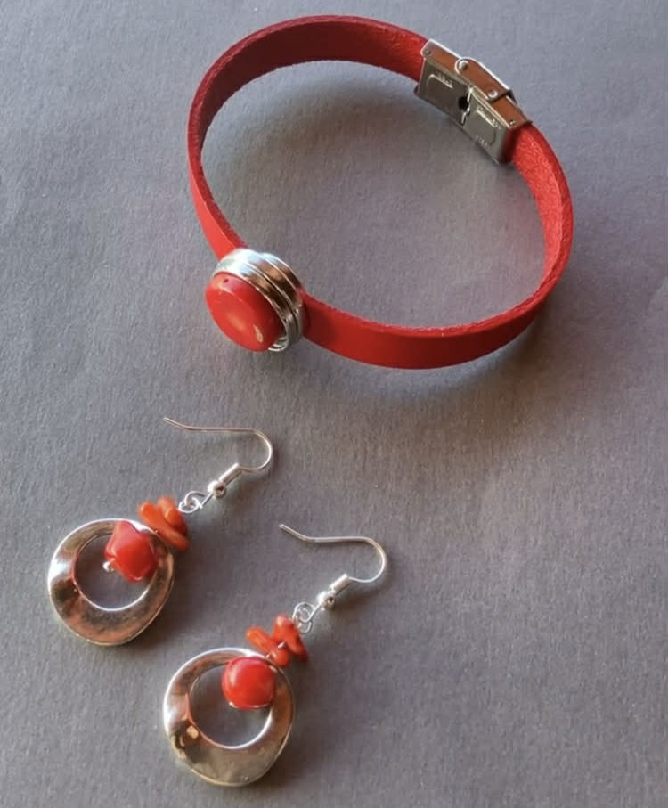 Ez a csodás piros színű malahit szett egyedi, kézműves munka.