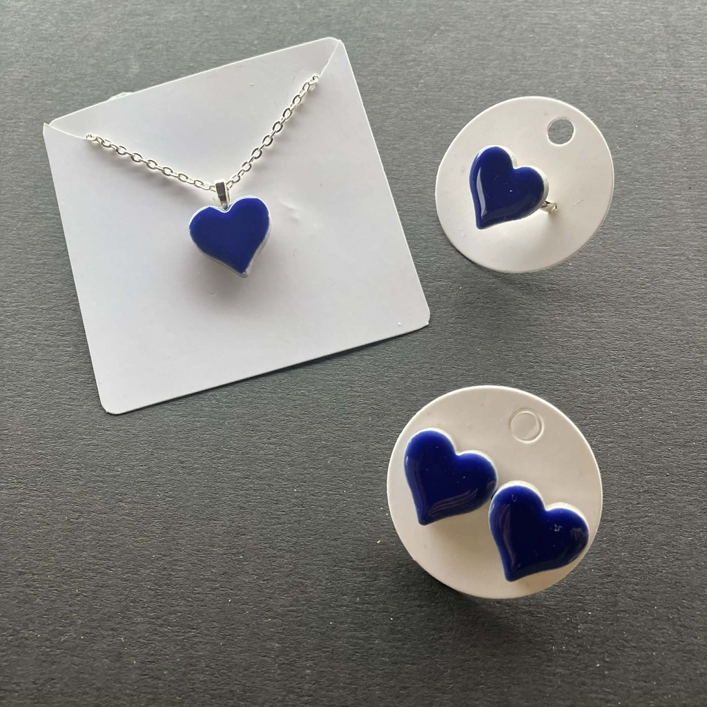 Sötétkék kerámia szív szett
