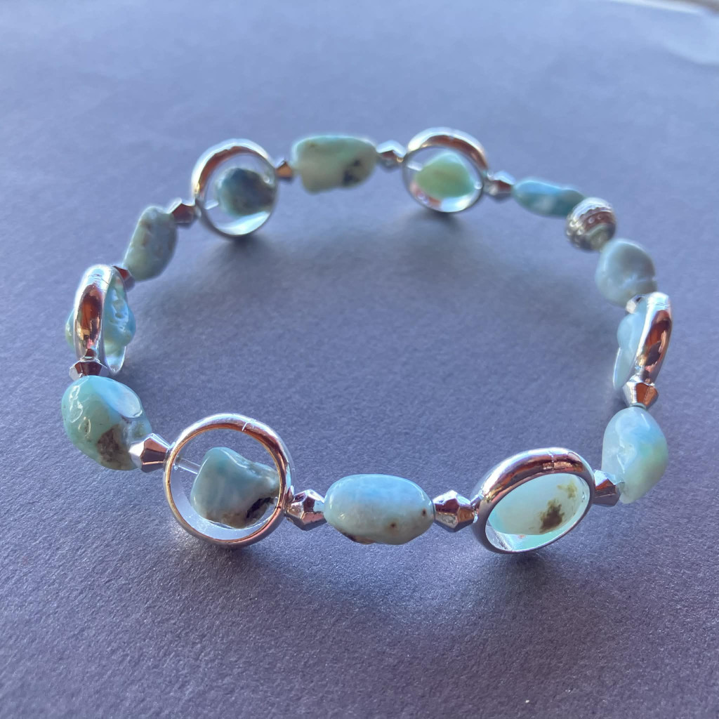 - egy 8-9 mm- es nyers LARIMÁR ásványgyöngyökből álló karkötő