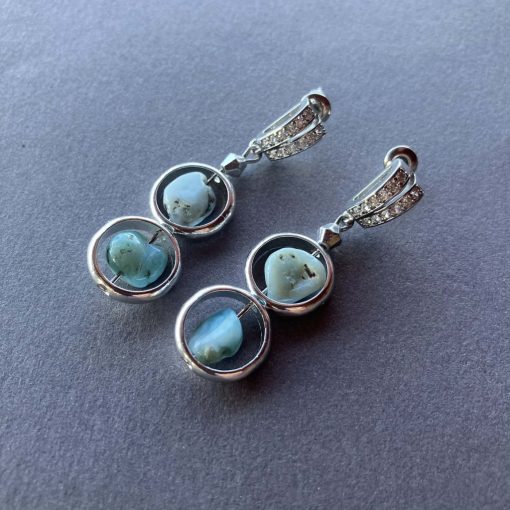 - 8-9 mm-es nyers LARIMÁR bedugós fülbevaló cirkónia kövekkel
