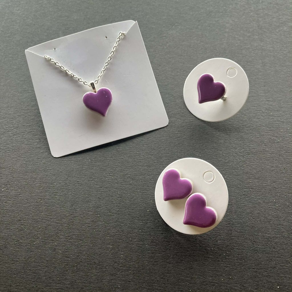 Lila kerámiaszív szett.